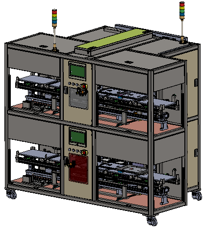 在FPC測試領域,公司以單工位測試治具或者多工位測試設備為核心,增加自動上下料功能、產品ID識別、撕膜、貼膜等制程模塊,并根據測試結果,對被測產品進行分類傳輸或者擺盤。